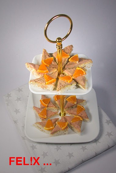 - aus sehr dünnen Orangenscheiben 80 ganz kleine Schnitze schneiden (oder schwarze Oliven vierteln), zudecken