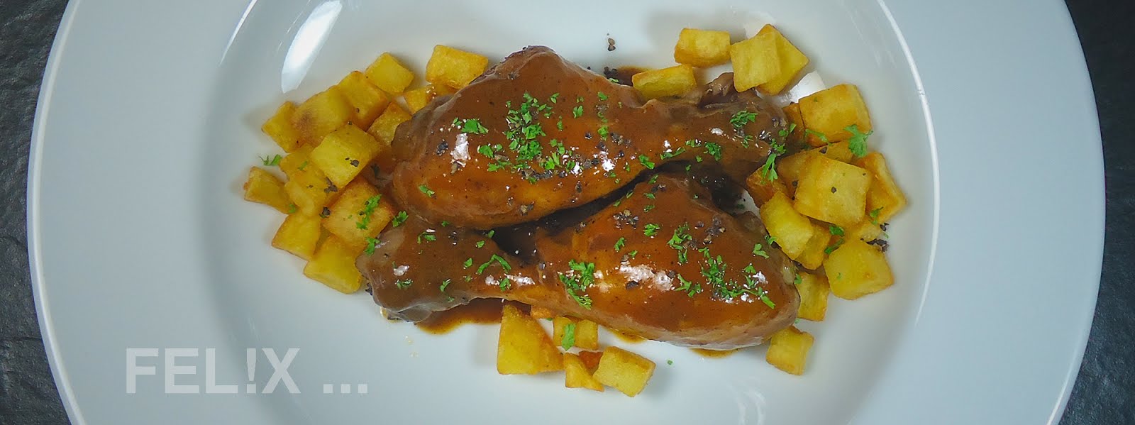 HÄHNCHENSCHENKEL AN ROTWEINSAUCE