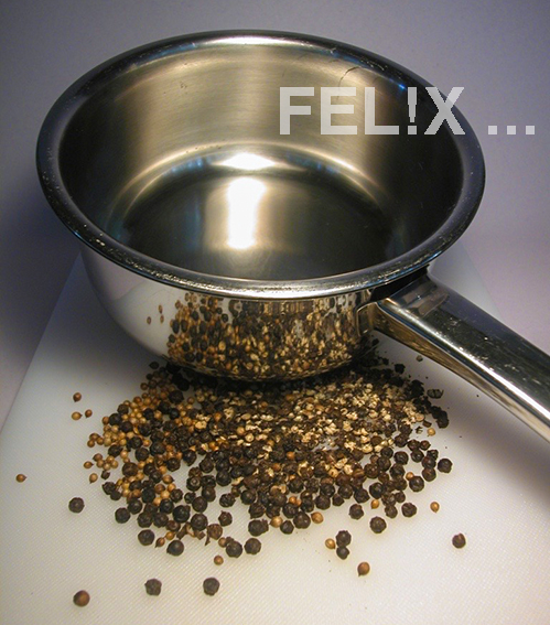 ……Mit Hilfe eines Pfännchens grob zerstossen: Kante des Bodens mit Druck über die Körner schieben.