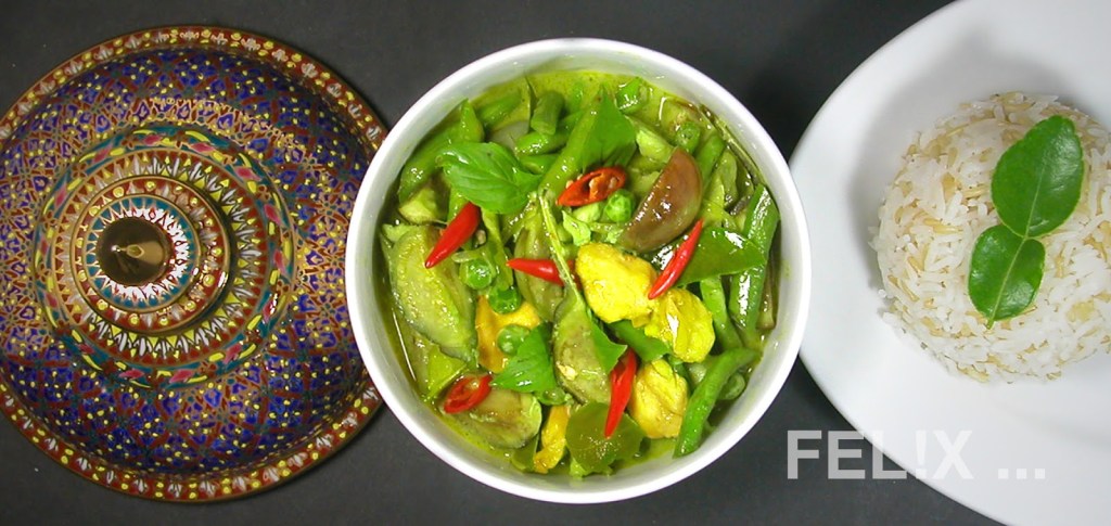 sind auch die Zubereitungsmöglichkeiten mit Curry-Pasten. Während die meisten davon eher in «trockenen», rührgebratenen Gerichten (also mit wenig Flüssigkeit) anzutreffen sind, dürfen andere auch in «suppigen» Zubereitungen mitspielen, wie beispielsweise die grüne Curry-Paste mit viel Kokosmilch im grünen Hühner-Curry: «Gäng khieo wan gai» – einem der bekanntesten Gerichte der thailändischen Küche.