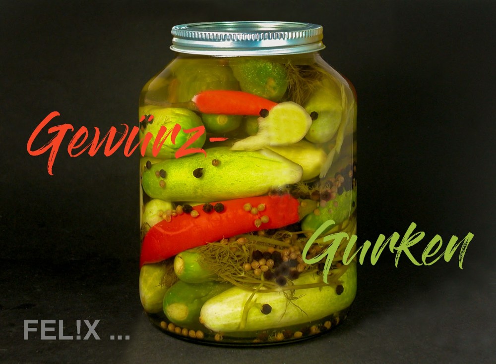 - je nach Grösse von Gurken und Glas bleibt etwas Flüssigkeit übrig, die Gurken müssen jedoch völlig bedeckt sein