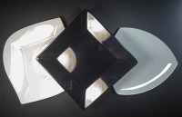 Ich gestehe, dass ich – wie viele Blogger – «geschirrmässig» einige Einzelstücke ausschliesslich zum Fotografieren besitze. Aber eigentlich wird nur wenig davon wirklich eingesetzt, weil sich ein paar dieser Teile unter der Kamera überhaupt nicht gut machen (wie beim Kauf gedacht!): schwarz glasierter Teller (viel zu viele Lichtreflexe, siehe Bild!), oder eine dreieckige Schüssel, die nur in ihrer Gänze abgebildet werden kann (beschnitten sieht das einfach blöd aus!). Und noch so ein paar Teile.