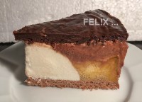 Jedenfalls ist die Mousse beim Auslösen der Torte aus dem Ring wie ein Pudding «in die Knie gegangen». Erst nach einem Aufenthalt im Tiefkühler konnte die Torte in Stücke geschnitten werden.