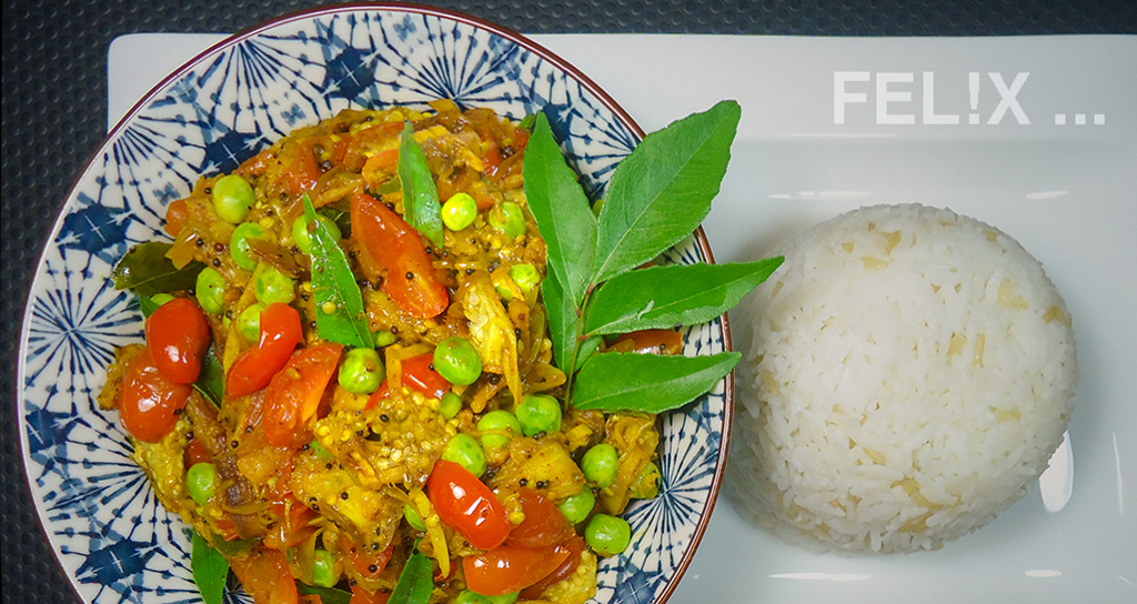 Tipp: wer keine frischen Curry-Blätter auftreiben kann – in indischen Geschäften mit Frisch-Gemüse – sollte sie einfach weglassen. Getrocknete Blätter sind kein guter Ersatz: sie haben leider praktisch kein Aroma.