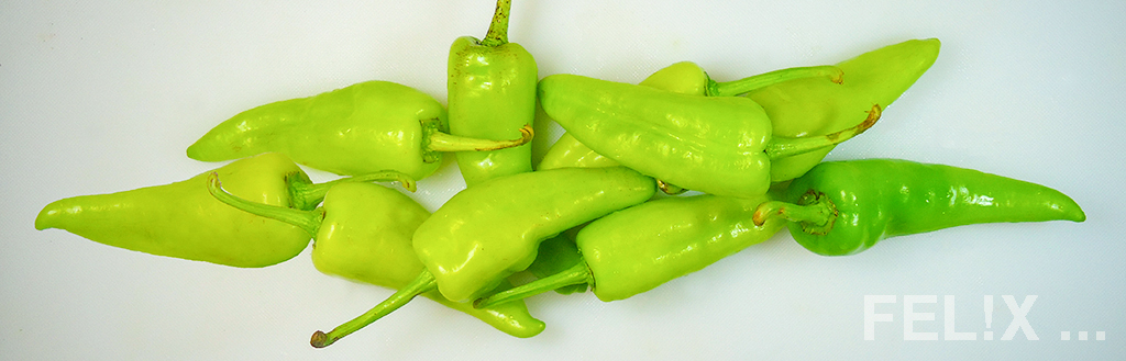 gibt es diese hellgrünen, länglichen Peperoni bzw. Paprika. Diese Peperoni-Sorte bleibt ausgereift hellgrün, sie ist nicht scharf, sondern mild-fruchtig im Aroma.