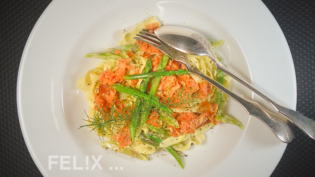Diese Tagliatelle mit Lachs und Spargeln habe ich zum Geburtstag meiner Schwester Elsbeth sozusagen «ferngekocht»!