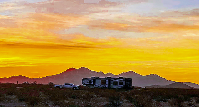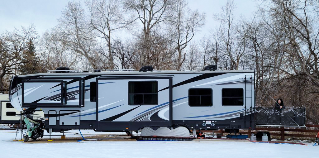 ist mit ihrem Mann in einem Luxus-Trailer (5th Wheel Toy Hauler RV) in den US of A permanent auf Achse, ihr Haus haben sie nämlich verkauft!