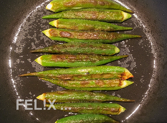 Die gebratenen Okras beigeben, nur noch heiss werden lassen.