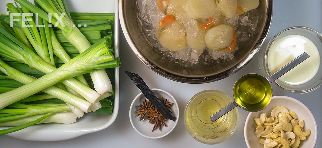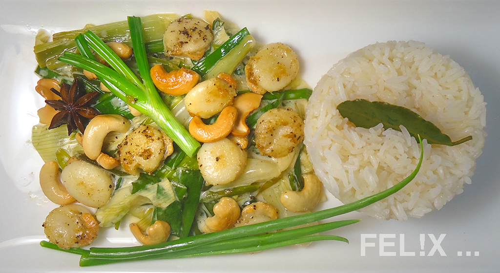 - zu diesem Lauch-Sternanis-Gemüse passen anstelle der Jakobsmuscheln auch kurz gebratene Kalbs-Médaillons, Hähnchenflügel oder -schenkel.