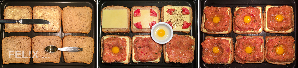 Für Hackfleisch-Toasts brauche ich kein «Fix», die Fleischmasse schmeckt individuell gewürzt – und ohne Zusatzstoffe! – ja viel besser und ist schliesslich auch gar keine Hexerei!