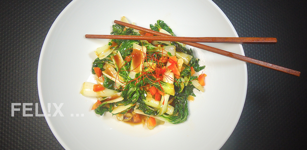 soll Pak Choi beim Rührbraten* auf jeden Fall bleiben und auch seine grüne Farbe behalten, sonst verliert er viel von seiner Attraktivität.