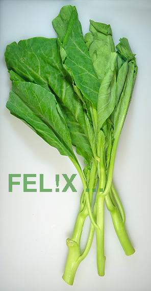Phak khanaa ผักคะน้า, Chinesischer Broccoli, chinesisch: Kai-lan 芥兰/芥蘭, e: Kale: ein Blattgemüse mit dicken Stielen und grossen Blättern ohne Blütenröschen.