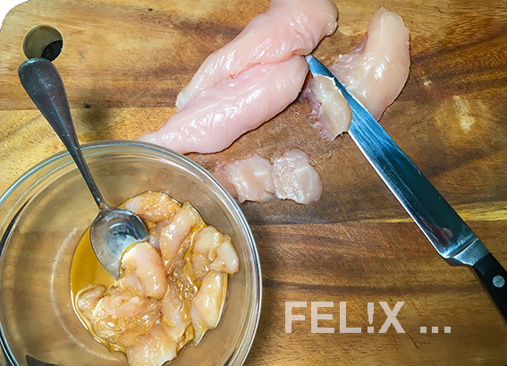 - durch das Marinieren mit Sojasauce und Maisstärke wird das Fleisch besonders zart