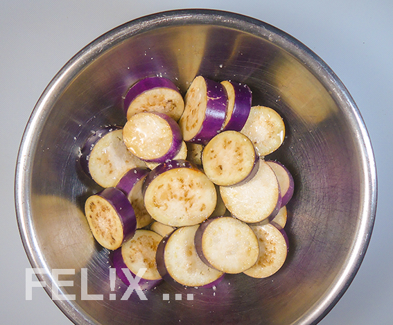 - die Auberginenscheiben wurden zuvor mit Salz behandelt, siehe oben