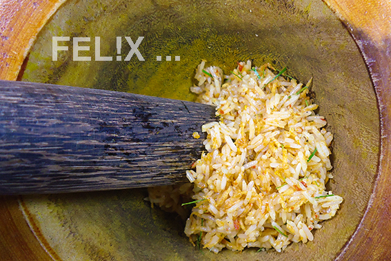 Die traditionellen Reisbällchen sind mit etwas Curry-Paste fein gewürzt.