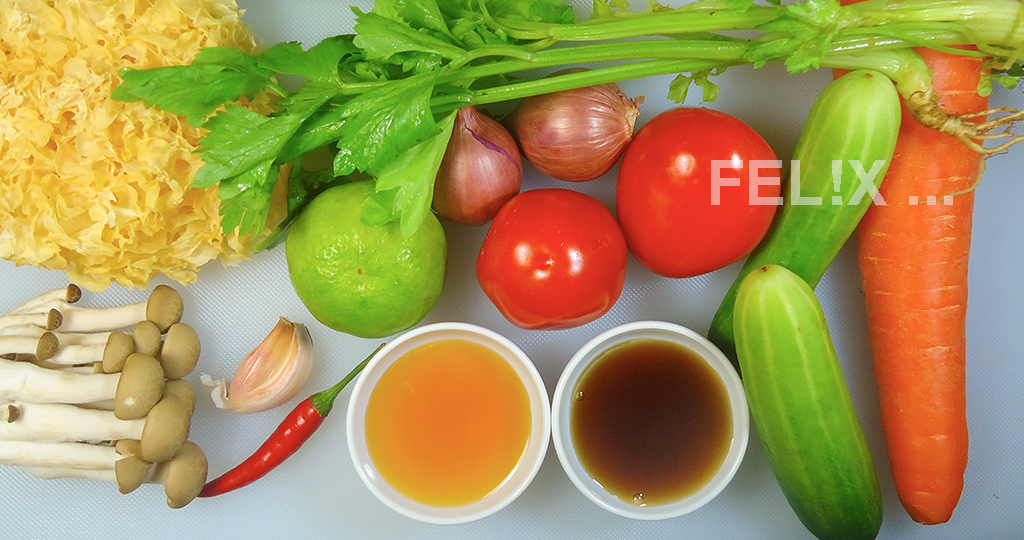 Weitere Zutaten beigeben, abschmecken: der Geschmack soll sich zwischen süss, sauer, salzig und scharf bewegen.