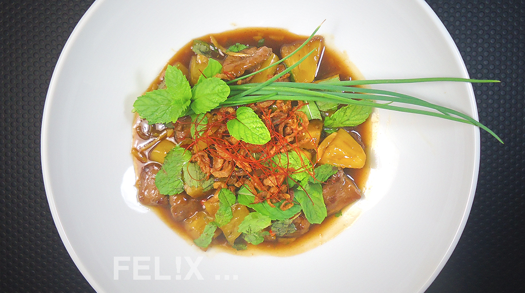 Und hier ganz besonders: Entenbrust, kross gebratene Haut, Ananas und Minze, asiatisch!