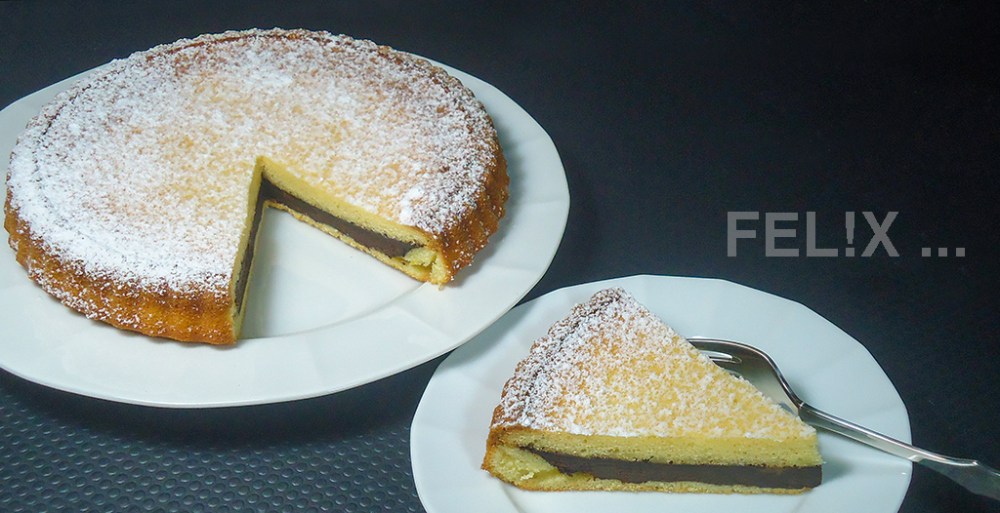 Dieser wird in zwei Portionen in die Form gegossen, dazwischen kommt eine Füllung: entweder eine Schokolade-Haselnuss-Creme oder noch einfacher eine Konfitüre.