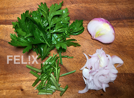 von der Petersilie die Blättchen zupfen, beiseitelegen.