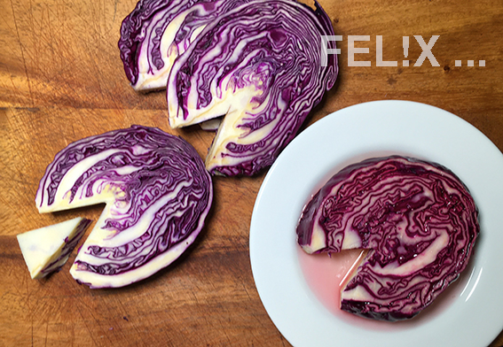 • das bisschen Condimento bianco (Aceto balsamico bianco) bewahrt dem Rotkohl seine blau-violette Farbe