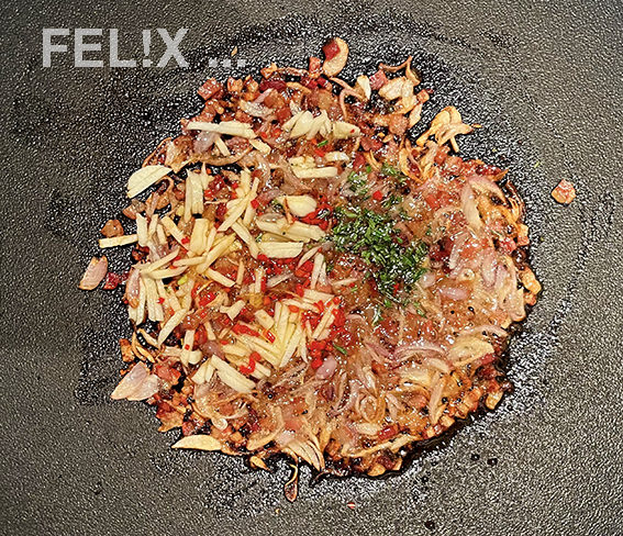 • Zuerst die Schalotten zum Speck geben, glasig dünsten.