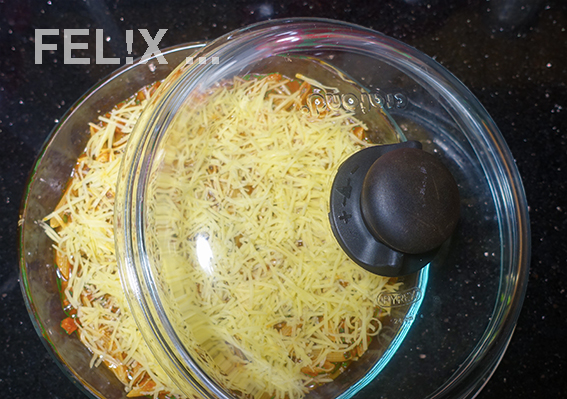 • 50 g Reibkäse: Gruyère, gereifter Cheddar