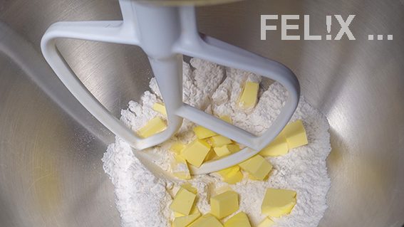 Alle Zutaten zu einer krümeligen Masse mischen (Flachrührer).