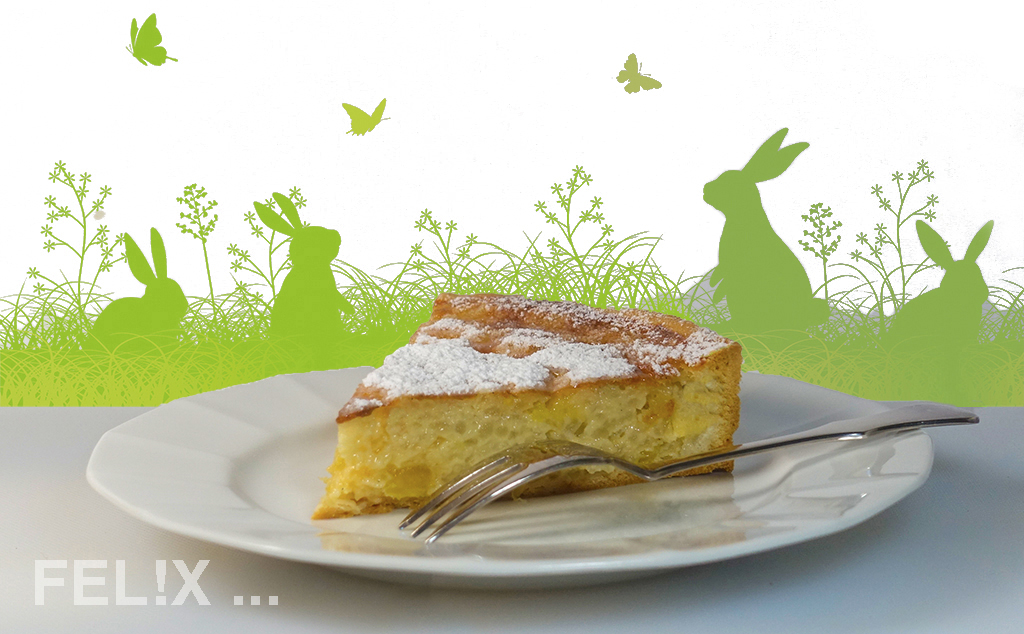 Kuchen mit Reisfüllung zählen – neben Oster-Fisch oder -Taube – wohl zum traditionellsten Gebäck an Ostern.