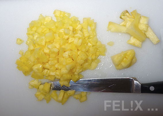 schälen, klein würfeln. Es braucht davon etwa 150 g.