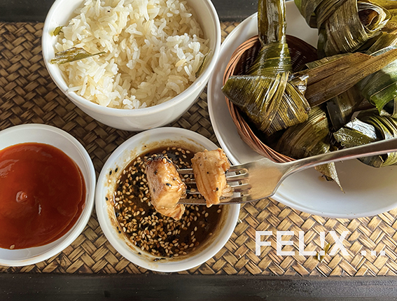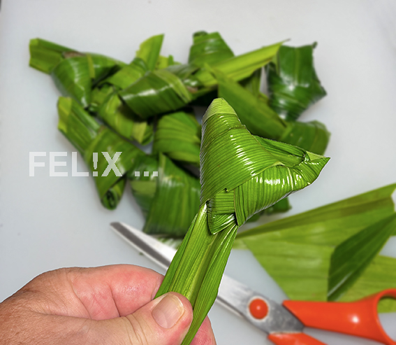 Es braucht nicht viele Zutaten: Pouletbrust, eine Marinade und Pandanus-Blätter. Ach ja: etwas Fingerspitzengefühl beim Verpacken der Poulet-Würfel in die Blätter. Aber spätestens beim dritten Päckchen hat man den Dreh raus!
