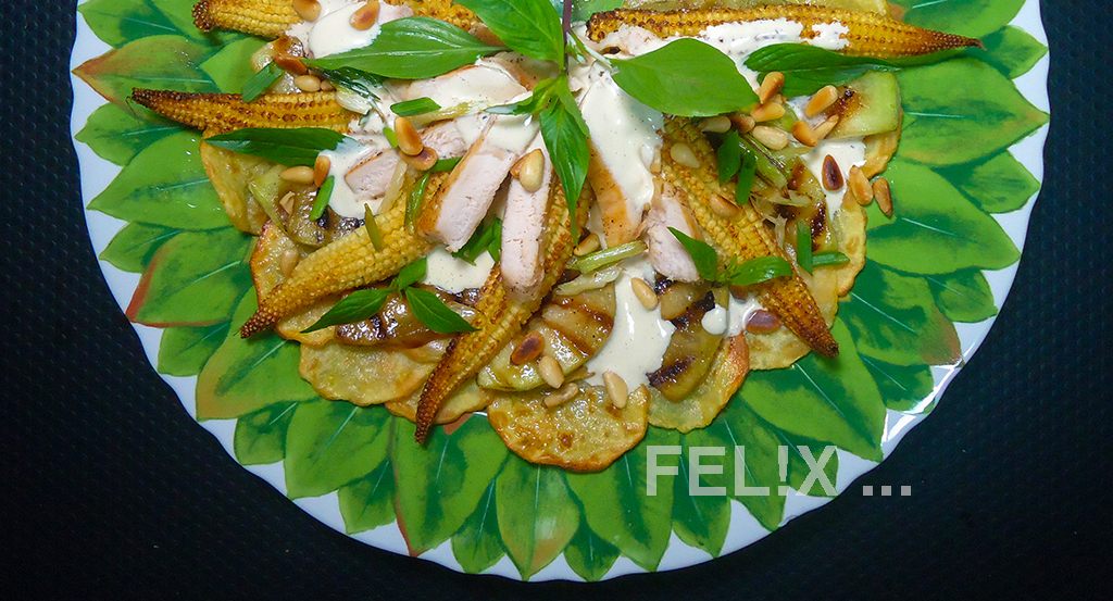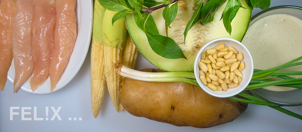 KARTOFFELN, MELONE, MAISKÖLBCHEN, HUHN