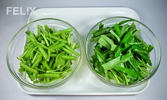 in ca. 5 cm lange Stücke schneiden, Stängel und Blätter separat beiseitestellen.
