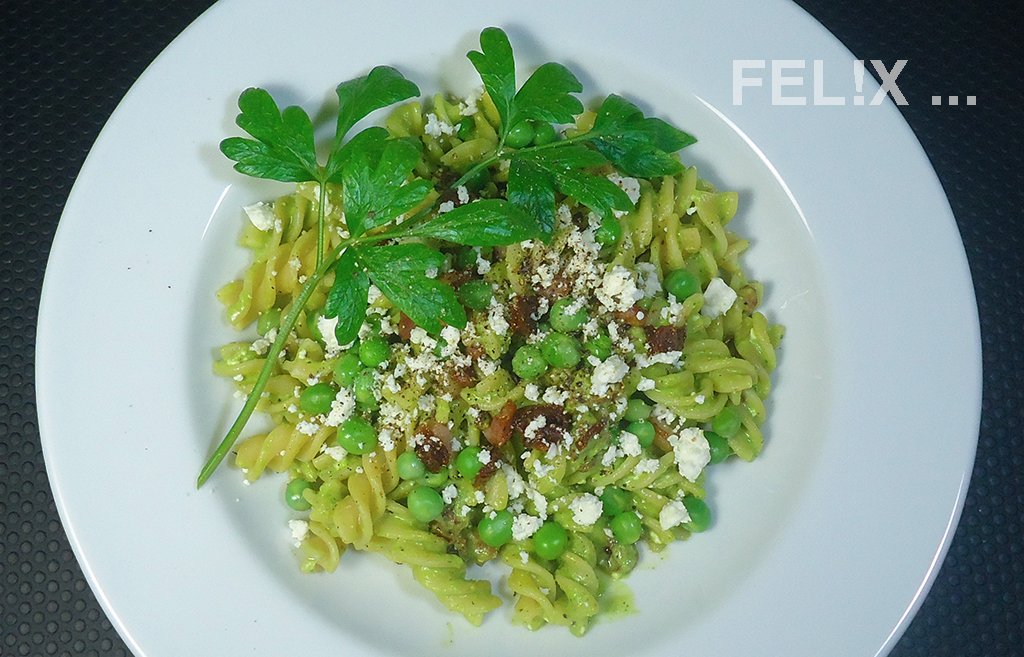Pürierte Erbsen mit Feta als Sauce zu Pasta gibt es im www zuhauf: die meisten davon sind identisch. Es fragt sich einmal mehr, wer denn wohl von wem abgeschrieben hat – nicht nur Blogger, vielmehr auch renommierte Kochzeitschriften!