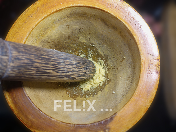 Ingwer und Knoblauch grob hacken, mit etwas Salz im Mörser zu einer Paste verarbeiten.