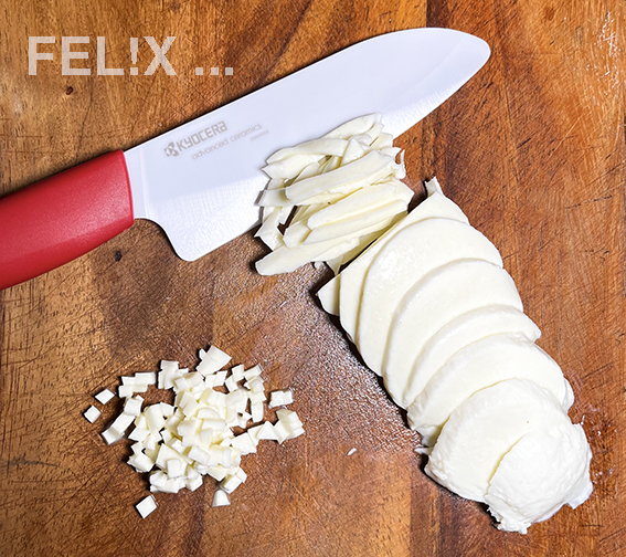 Mozzarella in feine Würfel schneiden.