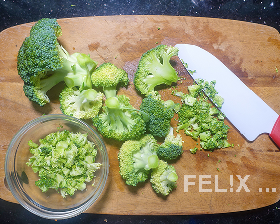 Broccoli in Röschen teilen, 100 g davon kleinschneiden.