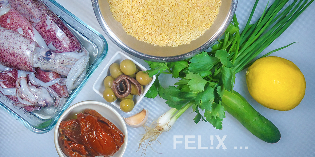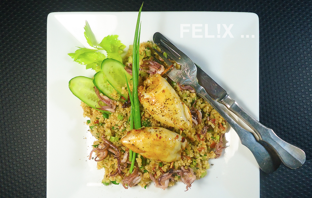MIT BULGUR GEFÜLLTE KALMARE AUF TABOULÉ