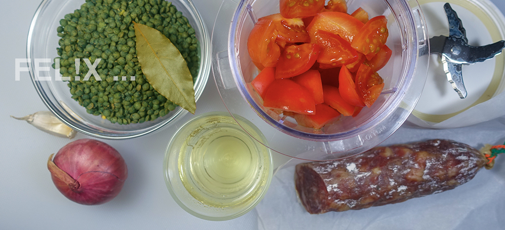 Hier zusammen mit Linsen und Tomaten. In Umbrien wird dafür «Salsiccia Umbra» verwendet, eine kleine Wurst, die aus Schweinefleisch, Rotwein und Gewürzen hergestellt frisch oder getrocknet erhältlich ist. Aus Ermangelung einer solchen habe ich Salami mit Fenchel verwendet.