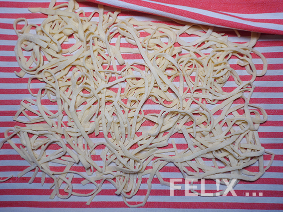 Ja, habe an dich gedacht beim Nudelschneiden, weil ich weiss, dass du derart handgeformte Pasta magst!