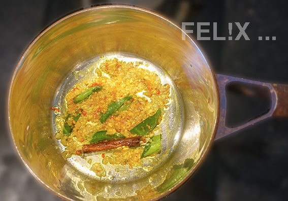 Weil sich die Säure von Tomaten gegenüber sämtlichen Milchprodukten – ob von der Kuh oder der Kokosnuss – nicht sehr kameradschaftlich verhält, kommt hier die Kokosmilch erst ganz zum Schluss dazu.
