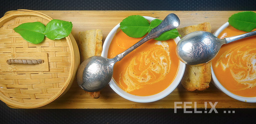 Dieses schnell zubereitete Tomaten-Kokos-Süppchen nimmt beim Blogevent «Suppenliebe» auf Zorras «Kochtopf» teil, bei dem Felix von «Reiseschmaus» Suppenrezepte sucht, die einfach in der Zubereitung sind.