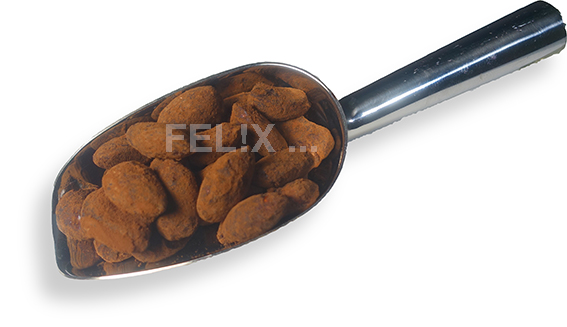Weil hier die Luftfeuchtigkeit hoch ist, habe ich die restlichen gebrannten Mandeln mit etwas Kakaopulver in einem Gefrierbeutel kräftig geschüttelt, damit sie nicht zusammenkleben.