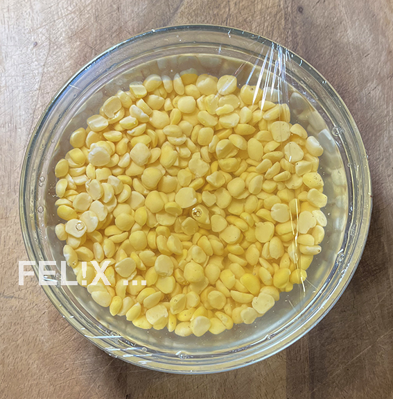 Erbsen in reichlich kaltem Wasser zugedeckt über Nacht einweichen.