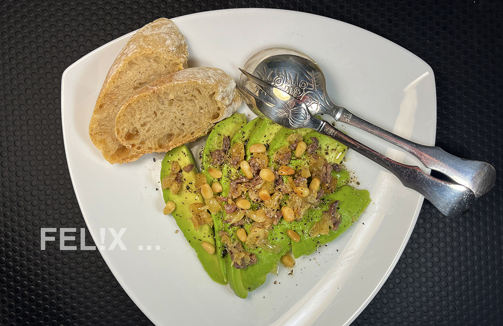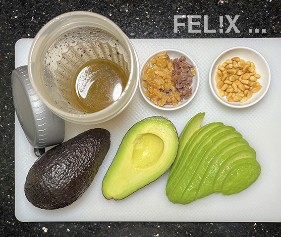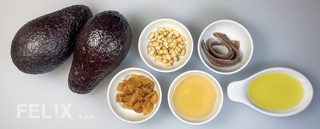 Hier eine Zubereitung mit Avocados, welche neben salzigen Anchovis-Filets auch süsse Rosinen enthält.