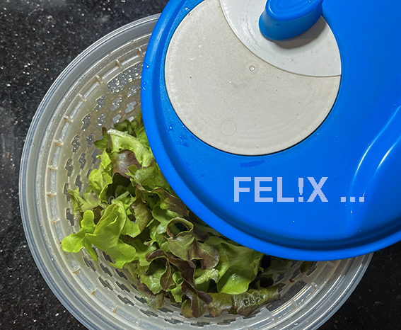 Schon klar: mit diesem Küchenhelfer wird Salat trocken geschleudert.