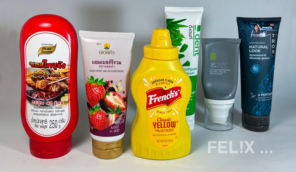 Früher habe ich all diese Kunststofftuben quer aufgeschnitten, denn wenn aus der Öffnung nichts mehr herausgedrückt werden kann, befindet sich im Inneren noch eine beträchtliche Menge an Senf, Ketchup, Gesichtscreme, Zahnpasta, oder worum immer es sich handelt.