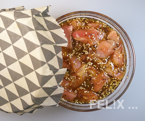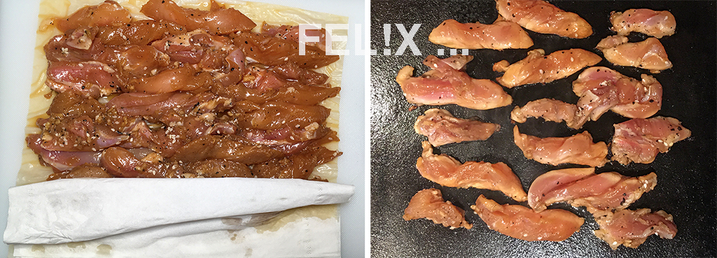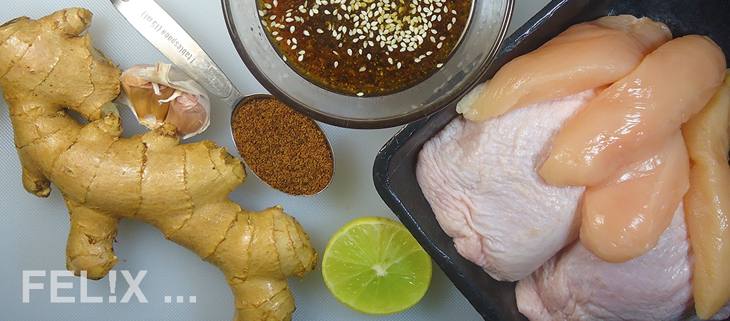 • 450 g Hähnchen [FEL!X: 2 Ober­schenkel, 4 Filets]