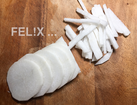 • 200 g weisser Rettich, falls nötig: geschält