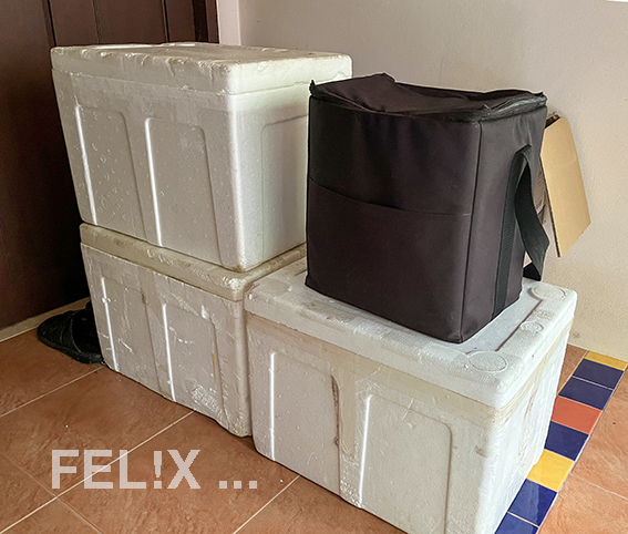 Ich räume fast den ganzen Inhalt des Tiefkühlers in drei grosse Styropor-Boxen, die ich zum Glück aufbewahrt habe. Sie dienten mir, wenn ich den bisherigen Tiefkühler abtauen musste.