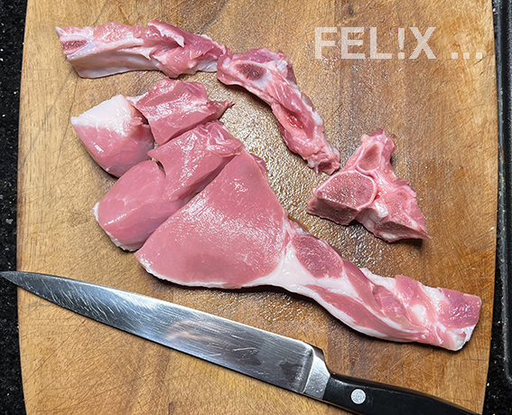 • 750 g Koteletts vom Schwein (oder 500 g Schweine­schulter ohne Knochen)